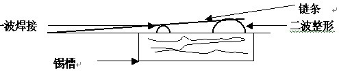 B、 當PCB闆走過錫(xī)液平面時,應保證(zheng)PCB零件面與錫液平(píng)面隻有一個切點(dian);而不能有一個較(jiao)大的接觸面;示意(yi)圖如下: