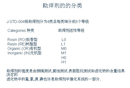 助焊(hàn)劑類别适合(hé)第一級别是(shì)不含鹵素的(de)