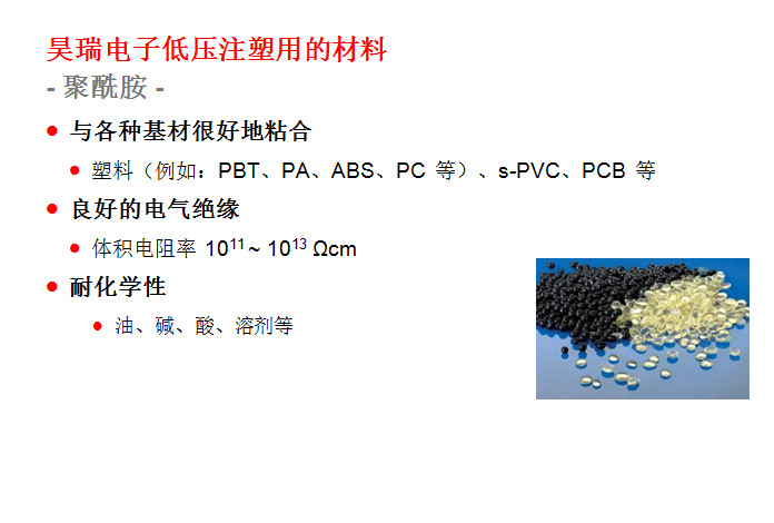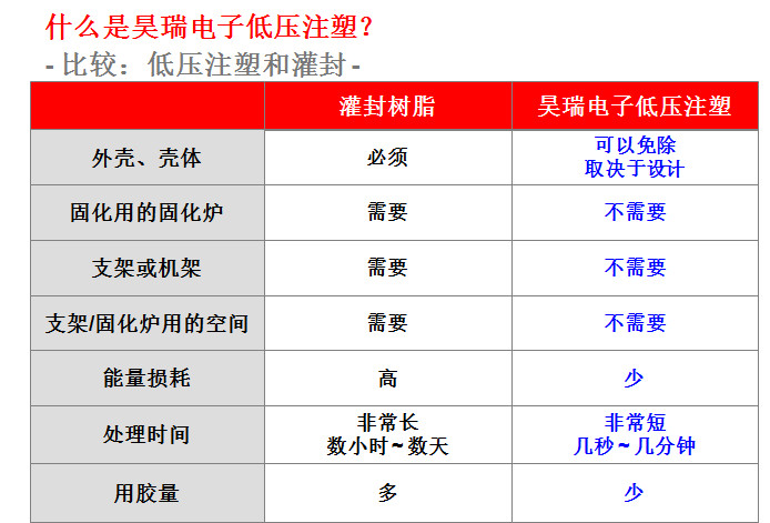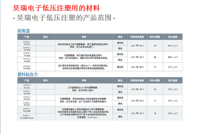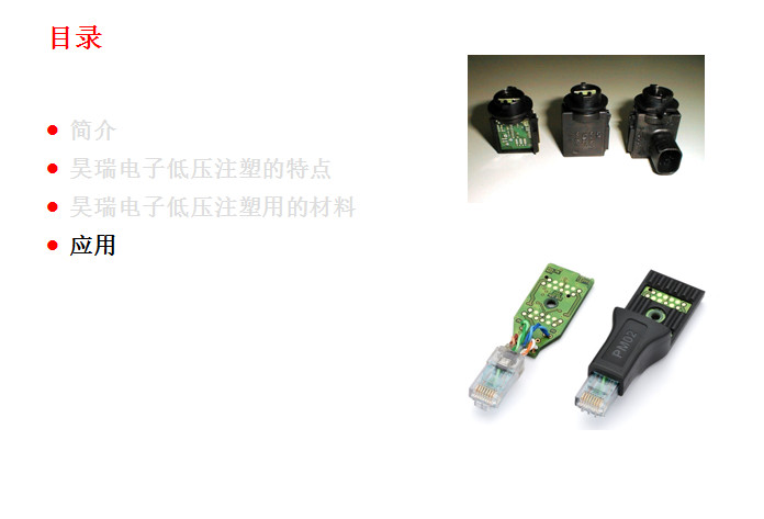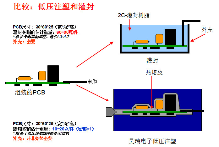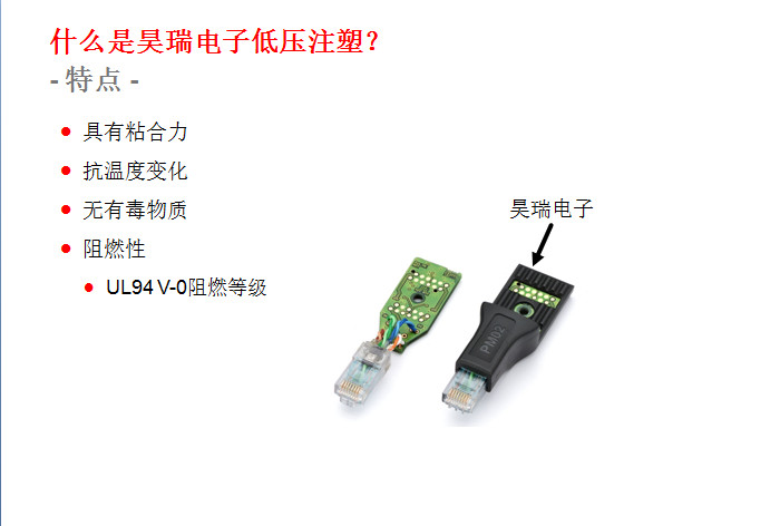 主要應(ying)用于精(jīng)密、敏感(gan)的電子(zǐ)元器件(jian)的封裝(zhuang)與保護(hu)。其應用(yòng)領域非(fēi)常廣泛(fan),包括:印(yìn)刷線路(lu)闆(PCB)、汽車(che)電子産(chan)品、汽車(chē)線束、車(che)用連接(jie)器、傳感(gan)器、微動(dong)開關、****等(děng)等。 此(ci)項工藝(yì)起源于(yú)歐洲的(de)汽車工(gōng)業,到目(mù)前爲止(zhǐ)在🈚歐美(mei)、日🚩韓等(děng)的汽車(che)工業領(ling)域和電(diàn)子電氣(qi)領域已(yi)🐅經成功(gong)應用了(le)十幾年(nian)。這(zhè)種低壓(ya)注射成(chéng)型技術(shu)的優勢(shi)表現在(zài):①提升終(zhōng)端♋産品(pǐn)❗的性能(neng);②大幅減(jiǎn)少新産(chan)品的研(yan)制成本(běn),縮短産(chan)品開發(fa)周期,同(tóng)時可以(yǐ)大❄️幅度(du)的提升(shēng)生産效(xiao)率;③總生(sheng)産成本(běn)的節約(yuē)。下面昊(hao)瑞電子(zi)就爲您(nin)圖文詳(xiáng)解一下(xia):
